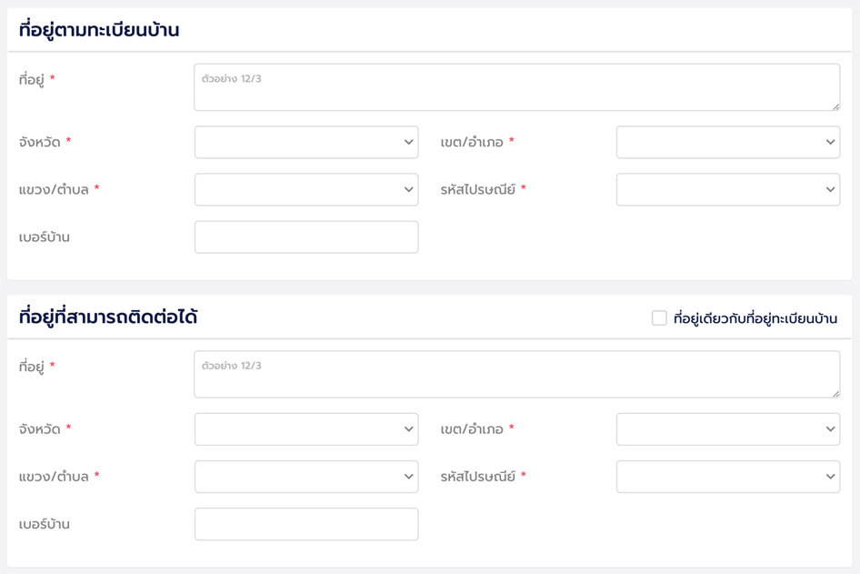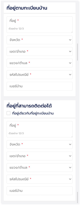 2. ที่อยู่ตามทะเบียนบ้านและที่อยู่ที่สามารถติดต่อได้