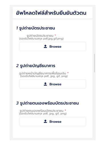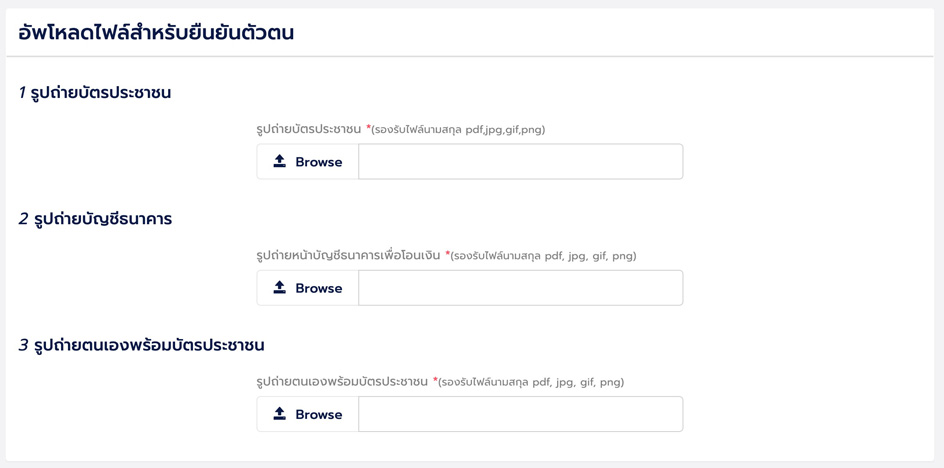 - รูปถ่ายตนเองพร้อมบัตรประชาชน