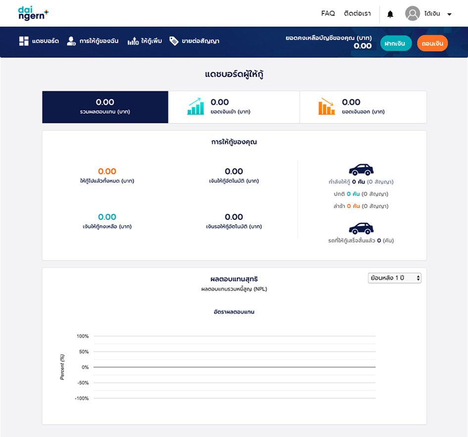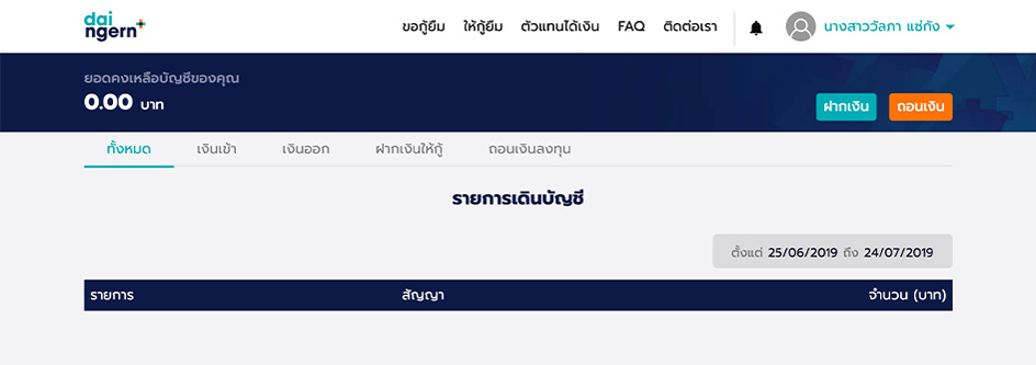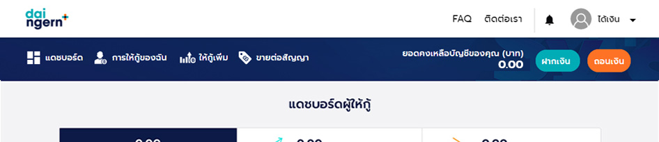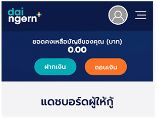 4. จำนวนเงินที่ฝากจะแสดงที่หน้าแดชบอร์ดของผู้ให้กู้ภายใน 15-30 นาที ประวัติการให้กู้ของนักลงทุนจะปรากฏอยู่ที่ “หน้าแดชบอร์ด”