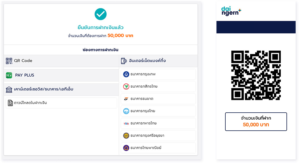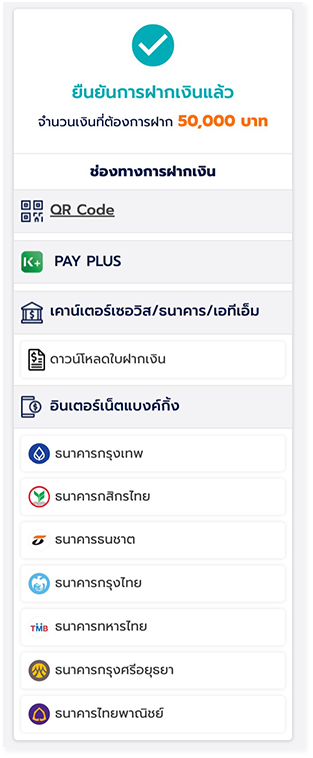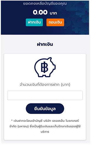 2. จากนั้นจะเข้าสู่หน้าฝากเงิน (ครั้งแรกผู้ให้กู้จะต้องฝากเงินขั้นต่ำ 50,000 บาท ครั้งต่อไปไม่จำกัดจำนวนเงิน) ใส่จำนวนเงินเรียบร้อยแล้ว กด “ยืนยันข้อมูล”