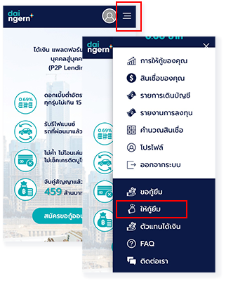 หากอนุมัติผู้ให้กู้สามารถเข้าสู่ระบบเพื่อเลือกให้กู้