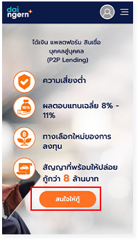 เลือก “ฉันยินยอมใน ข้อกำหนดและเงื่อนไขสัญญาระหว่างแพลตฟอร์มกับผู้ให้กู้”