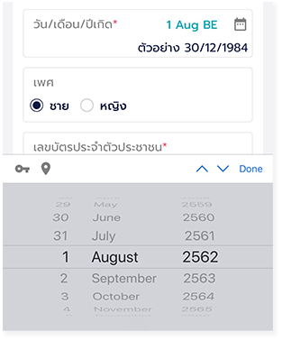 ในส่วนของการเลือกข้อมูลวันที่สำหรับระบบปฎิบัติการ ios จะเป็นรูปแบบดังภาพ